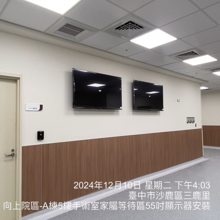 向上院區-A棟5樓手術室家屬等待區55吋顯示器安裝